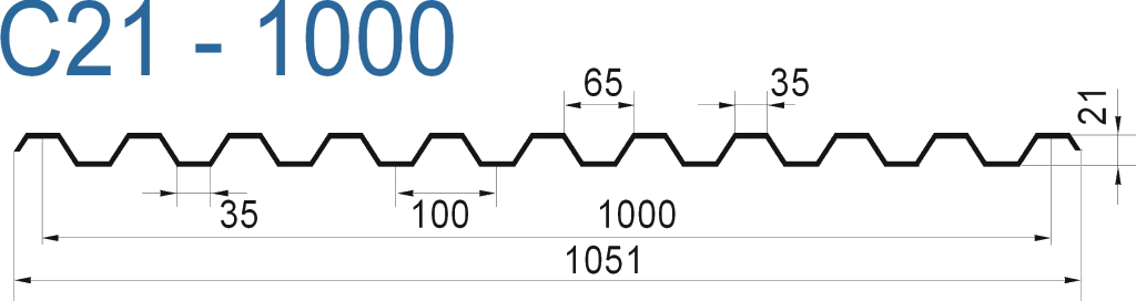 Его можно применять для монтажа кровель с малым уклоном. Профилю С21 из-за конструктивных особенностей не нужна канавка для стока воды. Срок службы – от 35 лет и выше.